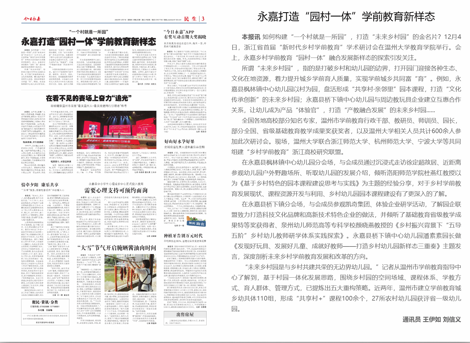 如何构建“一个村就是一所园”,打造“未来乡村园”的金名片?12月4日,浙江省首届“新时代乡村学前教育”学术研讨会在90足球直播网 举行。会上,永嘉乡村学前教育“园村一体”融合发展新样态的探索引发关注。