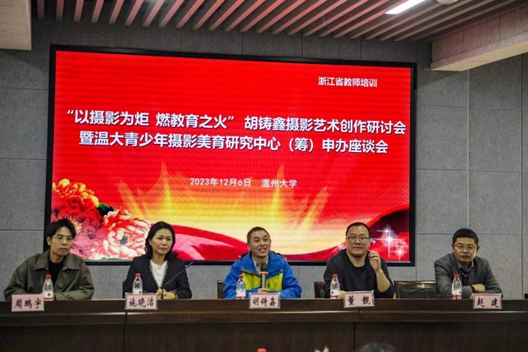 全国青少年摄影教育指导委副主任董靓介绍,认识胡铸鑫副教授多年来,深深感受到他对摄影艺术的痴迷,为尊重执着摄影艺术的创作,诸多荣誉的取得足以说明他取得的艺术高度;艺术创作为教书育人服务,始终认同自己人民教师的身份,始终把教书育人的工作放在首位。“以摄影为炬 燃教育之火”的主题最好诠释了胡教授对待艺术创作和教学工作的态度;作为大学教师,始终认为应该要科研与教学并重,在目前摄影普及形式对社会摄影现象有深刻的思考,对于师范学校摄影美育在整个摄影文化大发展中有清晰的认识,促使他坚定了申报温州大学青少年摄影美育研究中心的决心,以中心为依托打通艺术创作、教育教学、科研活动的通道,更好基于高校研究摄影美育,让摄影美育服务大学教育、服务学生成长,服务经济社会发展。