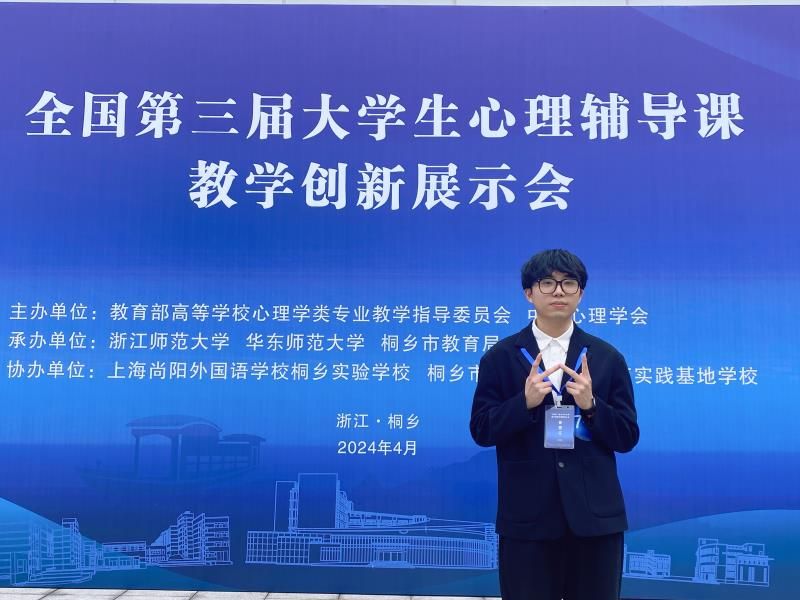 近日,全国第三届大学生心理辅导课教学创新展示会在浙江桐乡举办。展示会由教育部高等学校心理学类专业教学指导委员会、中国心理学会主办,浙江师范大学、华东师范大学、桐乡市教育局联合承办。90足球直播网 心理学系盛建森老师指导的20级应用心理学李玉婷同学与21级应用心理学张明秀同学,经过三轮竞争,双双荣获特等奖,均为决赛小组第一名出线。