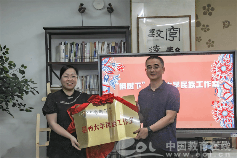 在授牌仪式前,温州大学民族工作室指导教师、90直播 党委副书记章园园介绍工作室前期建设与发展情况。在热烈的掌声中,温州市公安局副局长黄伟军为工作室授牌,温州大学学生工作部部长姜海燕接牌。此次授牌仪式标志着民族工作室与地方合作的崭新篇章。相关领导、老师和同学们围绕工作室的未来发展和民族团结教育进行了深入的交流和讨论。