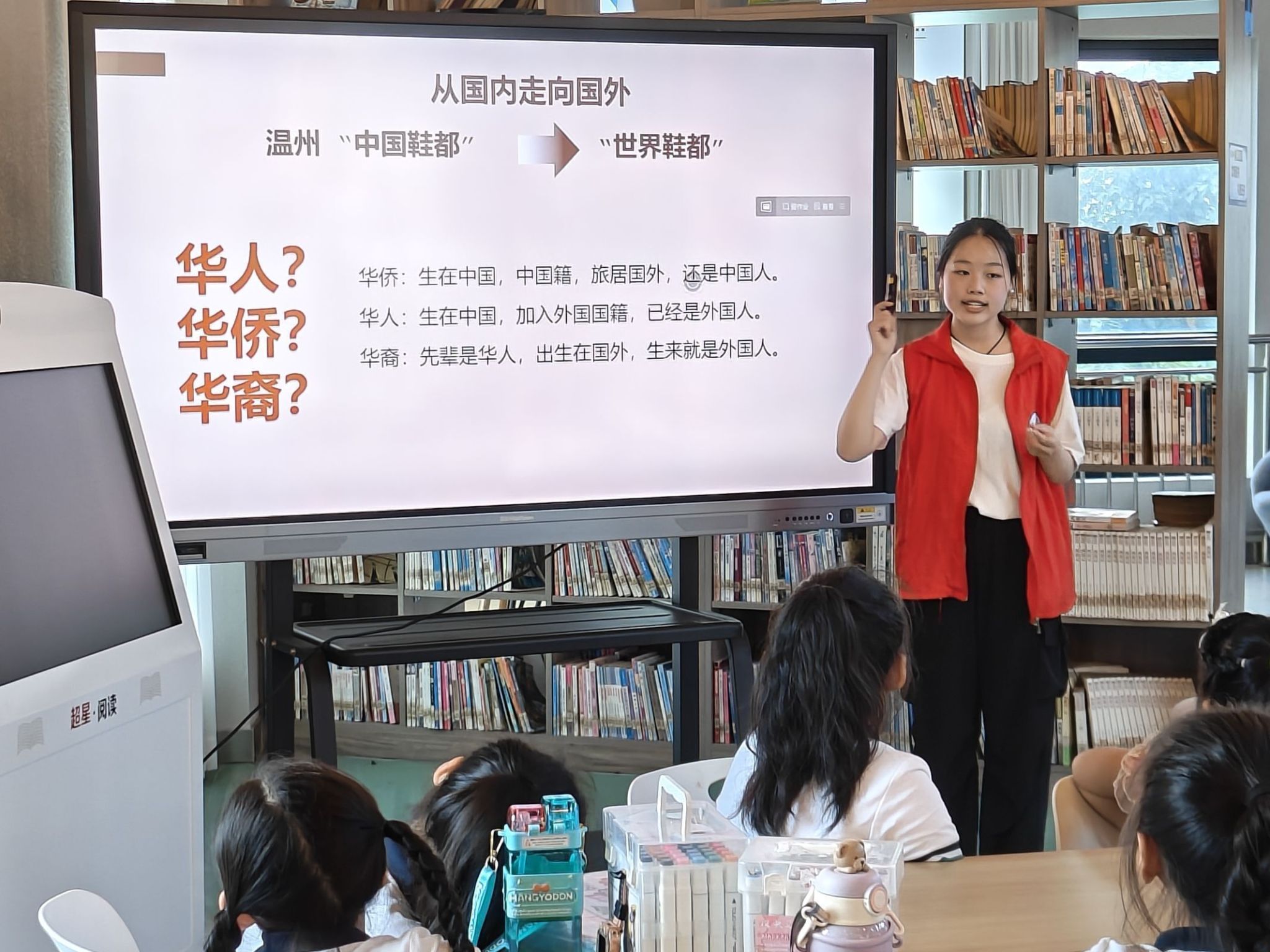 “我要把正宗的温州方言教给我的朋友们!”在“瓯韵文化沉浸体验”课堂上,实践队员们开辟侨讲方言——“争做温州特优声”板块。实践队的佳仪老师刚说出“温州”两个字,孩子们便脱口而出“yujiu”(“温州”的温州话),现场气氛好不热闹。