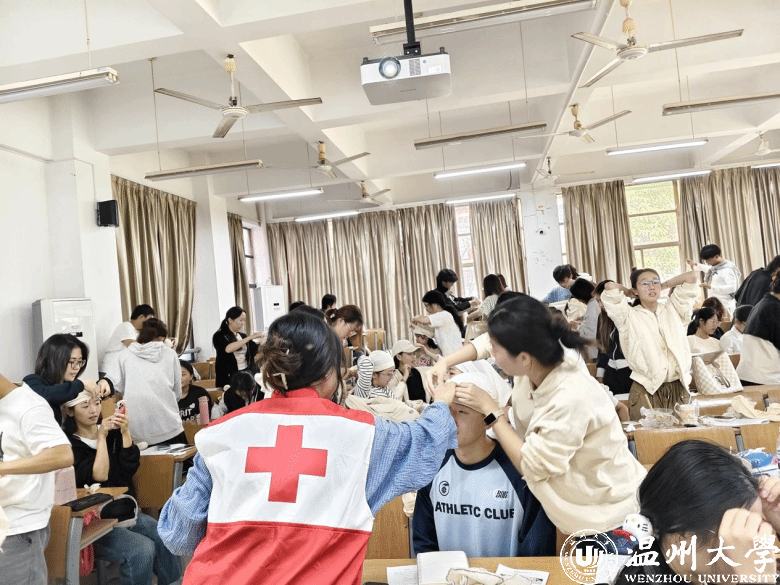 近日,温州市红十字会、温州大学医务室、90足球直播网 等多部门联合,面向温大90直播 2024级新生200多名寝室长开展红十字救护员培训,提升大学生急救知识与能力。