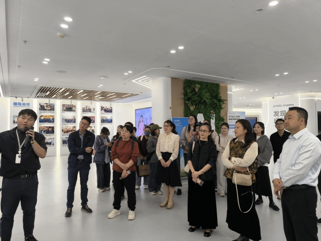 在公司负责人周中蒙的带领下,师生们参观了科大讯飞展厅,体验了讯飞星火大模型功能,观摩了具有多语种播报能力的科大讯飞虚拟主播“晓颜”的形象展示,并深入了解了科大讯飞在教育领域的创新应用,如讯飞码上平台、智能批阅系统和智慧黑板等。通过考察学习,大家都深有感触,认为对拓展学习视野、明确学习方向很有帮助,同时也对培养新质生产力人才有了进一步思考。