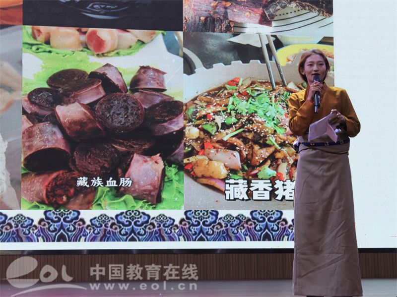 高大的雪山、清澈的湖泊、广袤的草原、牦牛点点、草甸如毡也如画卷。美丽的自然环境孕育了独特的藏区文化,展演开始,“石榴花·声声融”宣讲队的同学们携小朋友们一起走进大美西藏。他们以身着的藏区服饰为例子,分别介绍了那曲、林芝等各地风格各异的服饰、饰品以及其蕴含的巧思。令人垂涎欲滴的美食同样承载了民族文化,孩子们仿佛跨越千里,在灯火之下,品酥油茶香,听藏歌在草原上回荡。