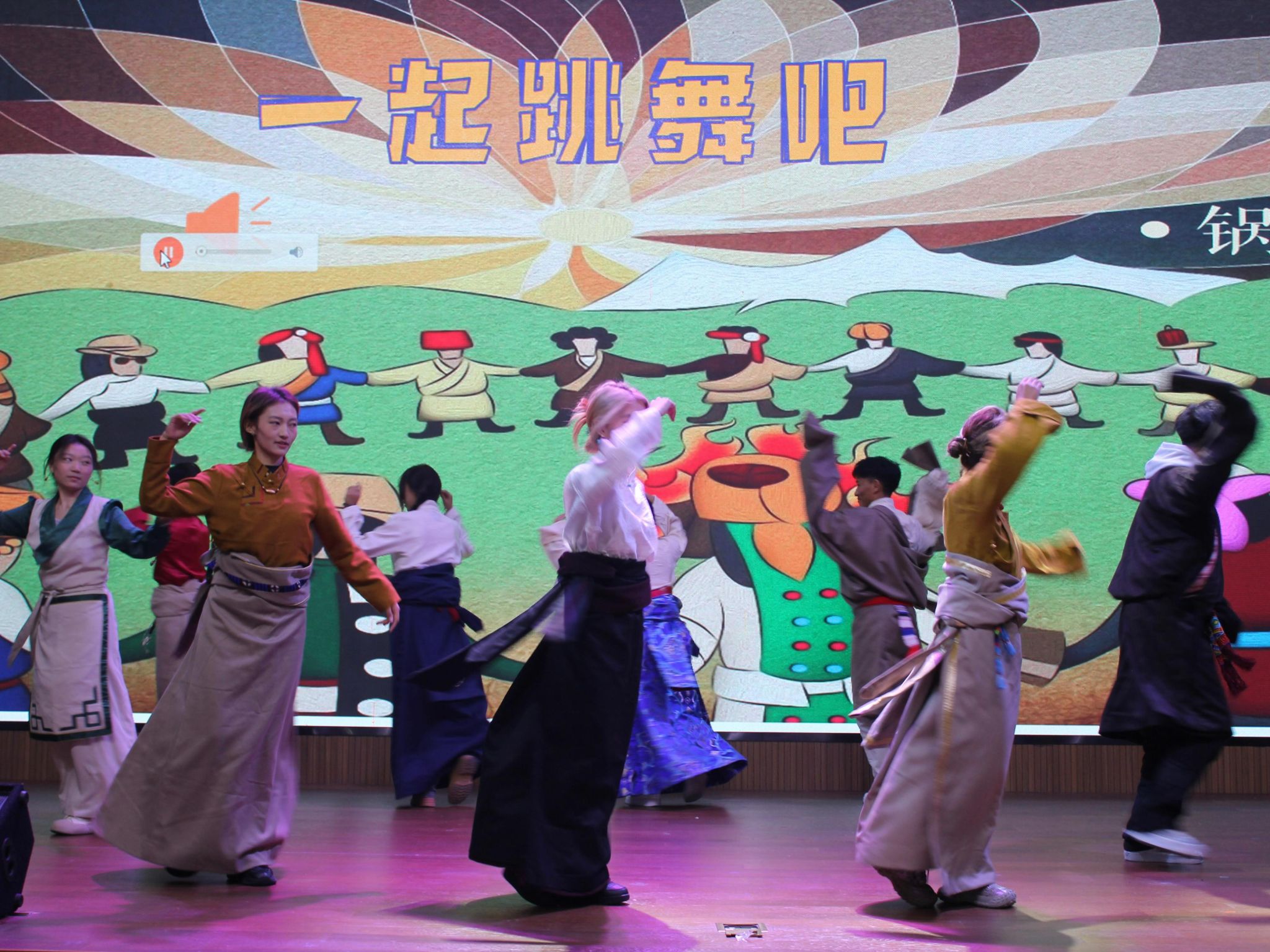语言为钥,解锁心桥。宣讲队通过“你好呀”“谢谢”等基础藏语的教学,引发孩子们的踊跃应答。尾声之际,藏族同学们身着民族华服翩翩起舞,又献哈达,以“扎西德勒”传递深情祝福。孩子们随之欢腾,课堂气氛热烈,温情满满。