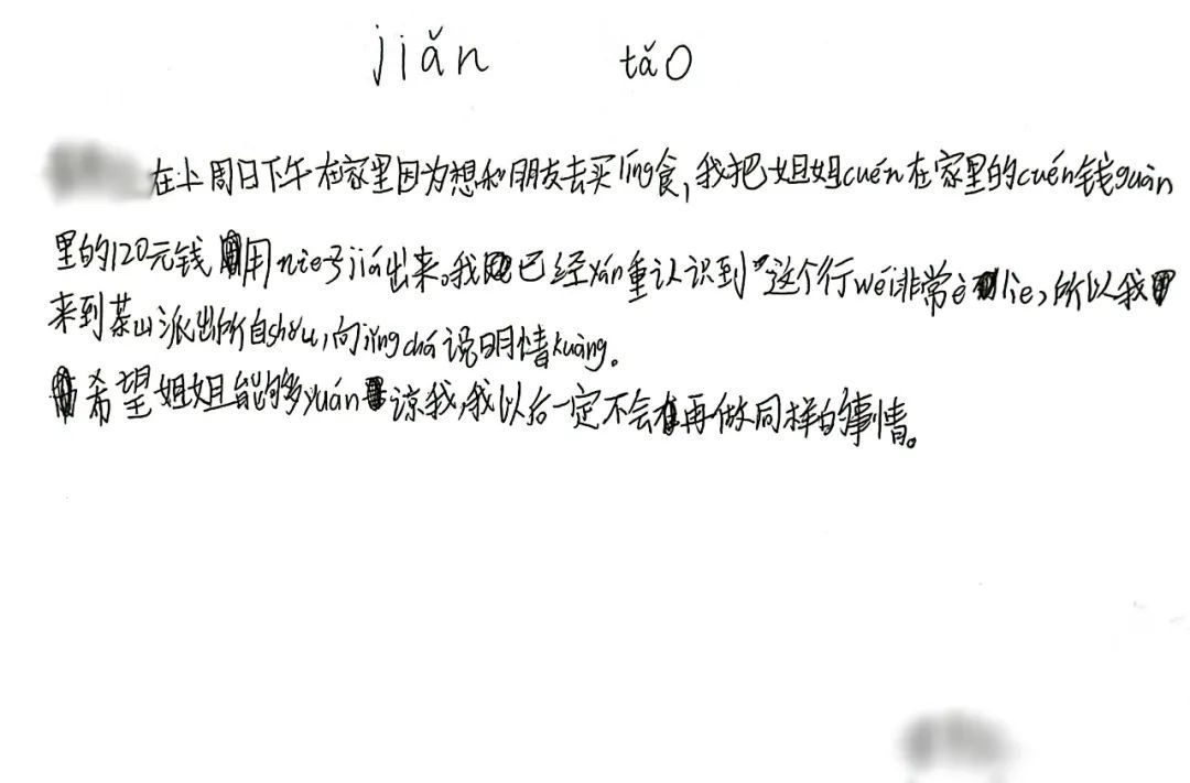 在陈静雅的安慰下,小王停止了哭泣,他一笔一画地开始写检讨书。他在检讨书里承诺,自己不会再做同样的事。