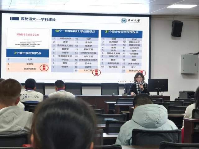 在嘉兴市秀州中学,“对对队”详细介绍了温大的招生政策、优势专业以及奖助学金、转专业等制度。宣讲结束后,不少同学意犹未尽地围了上来,索要宣传资料,询问报考细节。“我们一起去温油队”谐音“温幼”(温州市中等幼儿师范学校),他们以视频形式介绍温大幼师培养概况,并声情并茂地与学弟学妹分享学校卓越的师资团队、专业学习经验及考研就业的多元选择,为他们成为优秀未来幼师鼓劲加油。