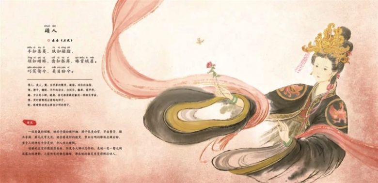 这里令我印象尤为深刻的是在《陪孩子读小古文》系列中的“神话寓言”“大家名篇”部分,配图对于盘古、后羿、刑天、仓颉、嫦娥、鲛人等形象的刻画与表现,堪称艺术作品般精美别致。