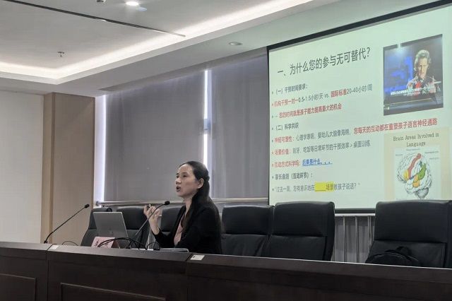 李晓燕教授是华东师范大学特殊教育学博士,现为温州大学孤独症儿童教育与康复研究中心主任,专注孤独症干预研究20年。她为家长们带来了一场生动实用的培训课程。李教授通过四个长期跟踪案例的展示,着重阐明了家长深度参与干预的重要性,让家长们深刻认识到“日常生活互动时间就是最好的干预时机,比如吃饭时描述饭菜的颜色、形状、味道等”,并现场传授了“家庭干预三大黄金法则”,号召家长立即行动。