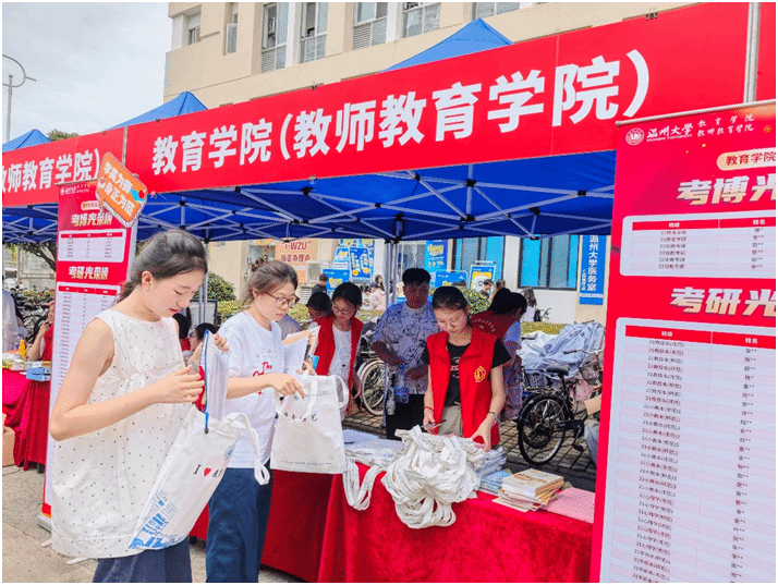 为了引导新生锚定大学目标,笃定未来志向,重视学业规划,温大90直播 将升学启蒙作为迎新重要环节,在迎新摊位前布置了考研考博光荣榜,引得众多新生与家长驻足观看。“哇,好多考上华东师大、南师大等名校的,好厉害。”在赞叹学长学姐优异表现的同时,新生们也在心中埋下升学深造的种子。