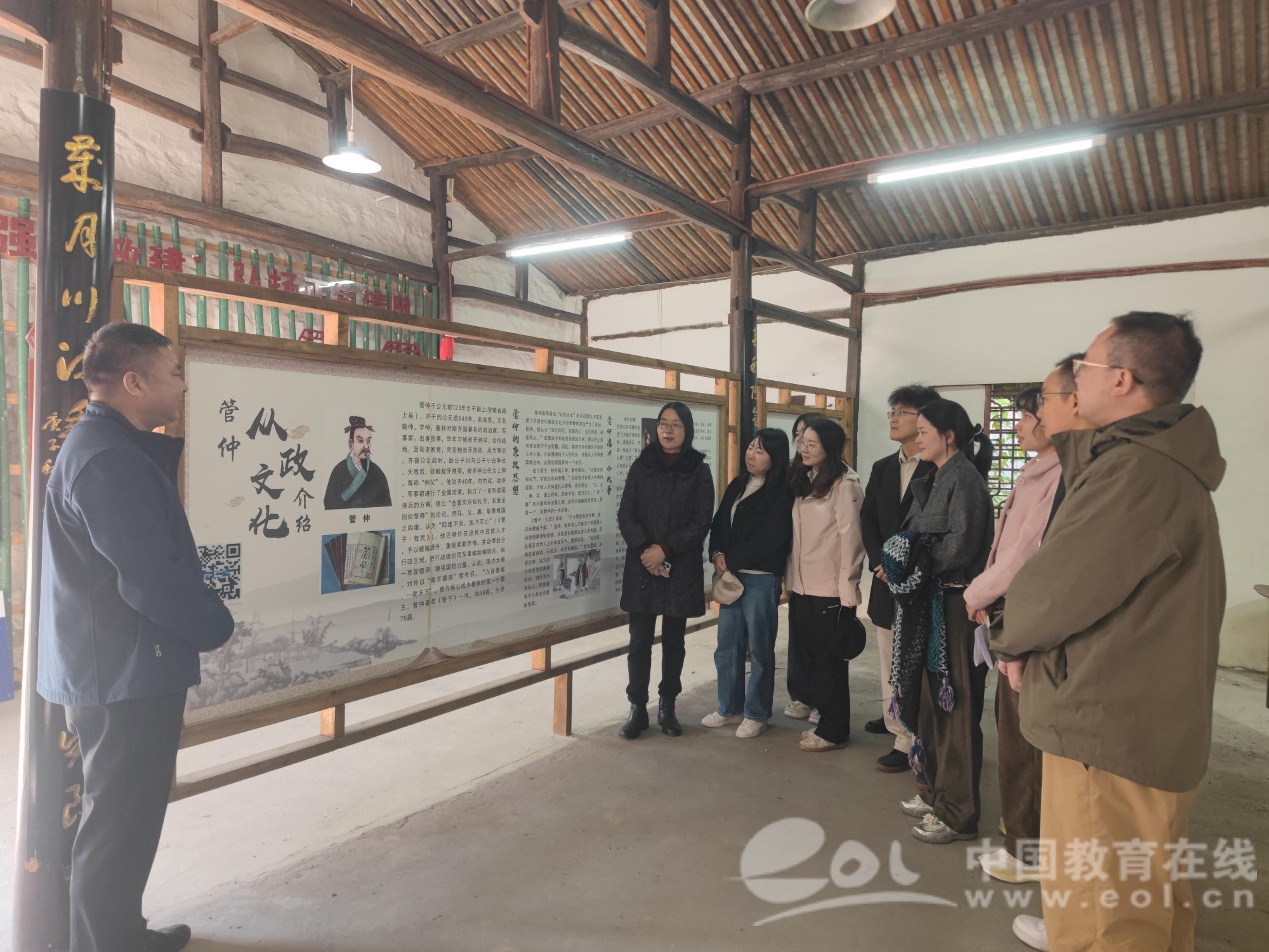 活动伊始,全体人员实地参观了古村内的管子文化遗迹,聆听管仲尊王攘夷、九合诸侯的历史功绩。章志图结合《管子·牧民》中“四维(礼义廉耻)不张,国乃灭亡”的治国理念指出:“管仲将‘廉’与‘礼义耻’并列为国家存续的四大支柱,本质是通过道德教化与制度约束的结合,培养‘知廉耻、明大义’的国民品格——这与当前90直播 开展的立德树人综合机制改革核心目标高度契合。”他进一步阐释,管仲辅佐齐桓公成就霸业时,既注重“盐铁富国”的经济基础建设,更强调“选贤任能”的吏治改革和“礼法并用”的社会治理。其“治国必先治吏”“化民成俗”的实践逻辑,正是“通过关键群体的廉洁与德行,引领整体生态向上向善”的早期探索。“这些举措对当前的师德师风建设、学生品德培养、校园廉洁生态建设具有重要启发。”章志图强调,教育工作者需从历史中汲取智慧,将廉洁基因融入育人全过程。