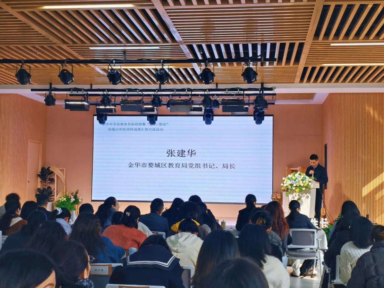 12月18日,金华市婺城区紫金幼儿园内,金华市学前教育县际研修暨“温大-婺幼”校地合作阶段性成果汇报交流活动举行。90足球直播网 副院长林琛琛、学前教育研究中心主任李娟教授等专家,与金华市婺城区教育局党组书记、局长张建华等领导,以及金华9个县市区学前教育工作者齐聚,通过户外游戏视导、示范课展示、教研沙龙等环节,展现婺城学前教育从“普及普惠”到“优质均衡”的跨越,这也是温州与金华教育协同共富的生动实践。
