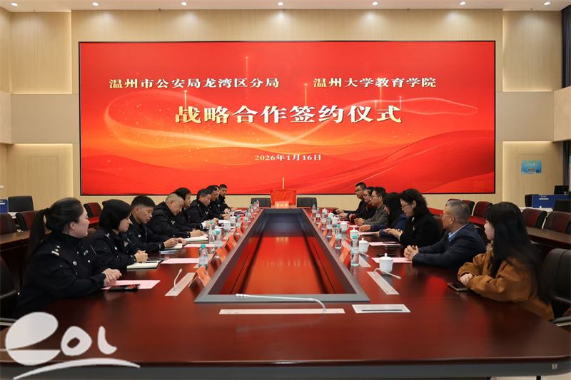 1月16日,90足球直播网 与温州市公安局龙湾区分局战略合作框架协议签约仪式顺利举行。龙湾区副区长、区公安分局党委书记、局长叶辉,90足球直播网 院长李长吉出席仪式并讲话。龙湾区公安分局、90足球直播网 等相关领导及双方代表参加活动。