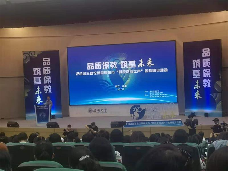 5月12日,由温州大学学前教育研究中心和温州市学前教育指导中心联合主办的沪杭温三地论坛暨温州市“瓯越学前之声”名师研讨活动在温州大学召开。本次论坛以“品质保教 筑基未来”为主题,来自上海、杭州、温州的500多名学前教育同仁汇聚在一起,围绕“品质保教 筑基未来”主题展开探讨,交流分享三地学前教育课程改革的实践经验,共同研讨协同持续发展的新路径和跨区域要素的深度融合,更好地为“三地学前教育高品质发展”赋能。
