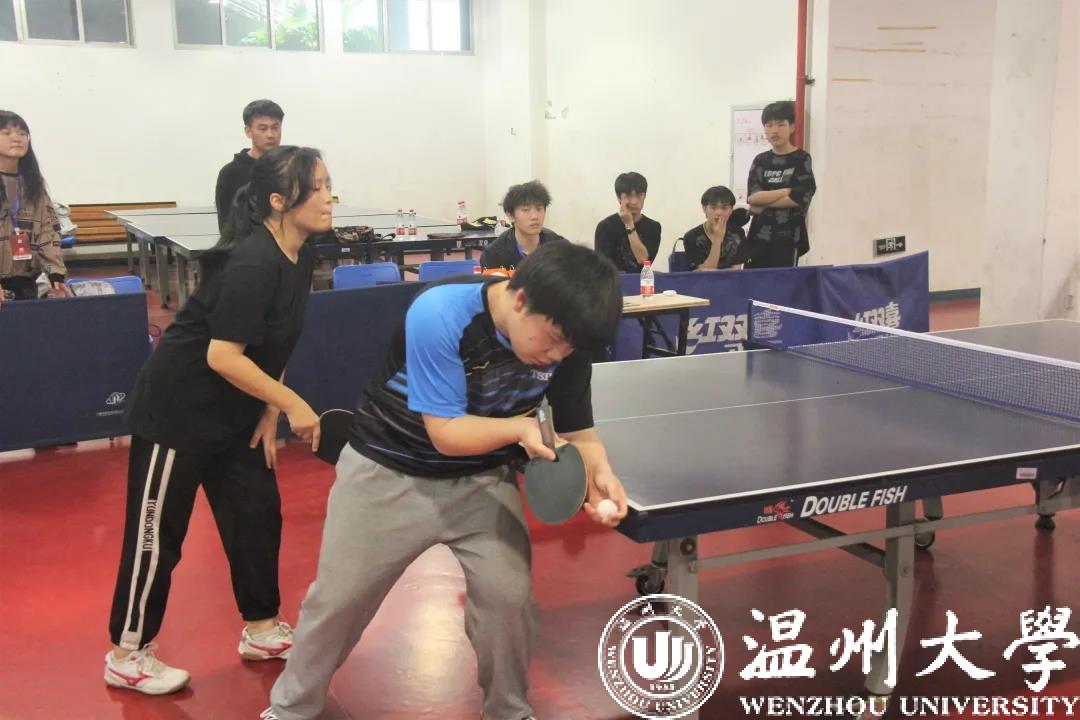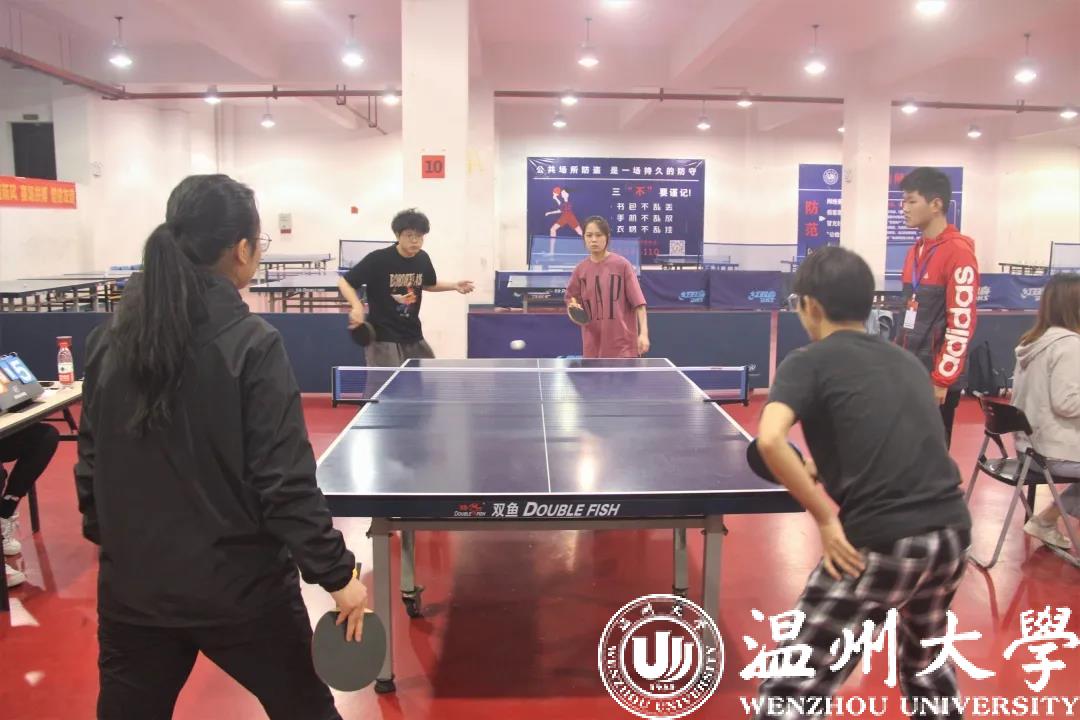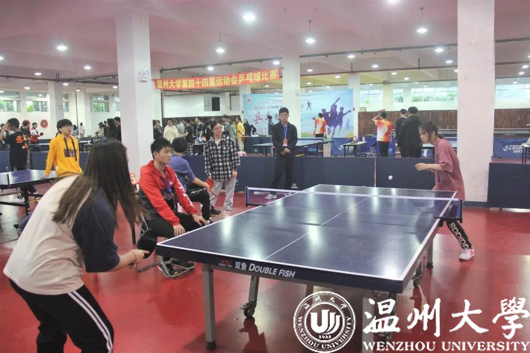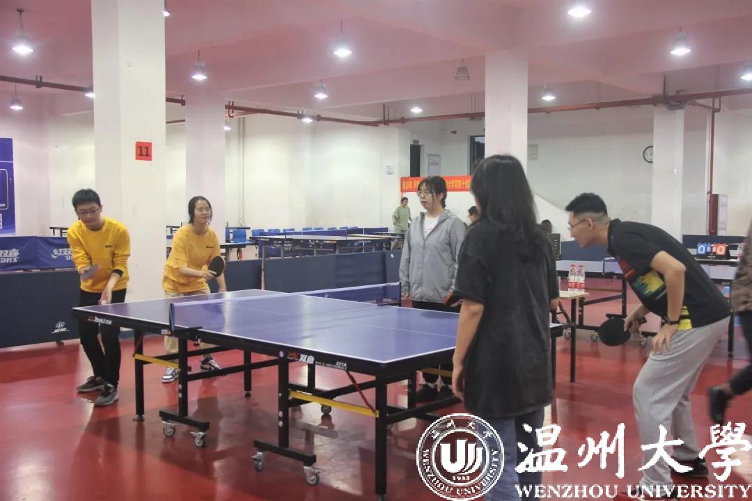 一次次回旋,一个个削搓,球拍与球在赛场上不停碰撞,勾勒出一道道完美弧线,精准落向台面。4月18日,温州大学第四十四届校运会乒乓球比赛在温州大学南校乒乓球馆隆重举行,90足球直播网 胡圣凯、沈冰伟、朱玥橦、程玲四位同学在金建钰教练的带领下,组成学院代表队参加了此次比赛。
