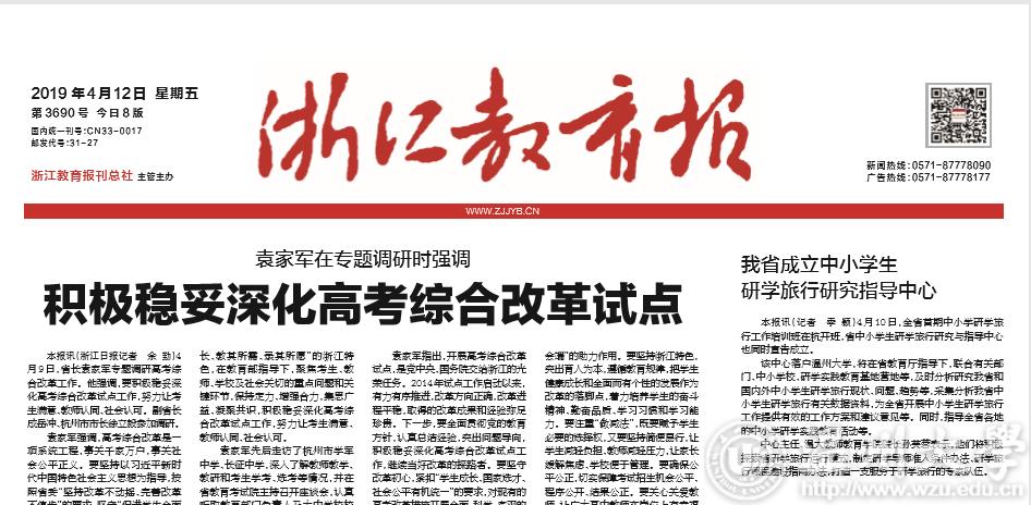 4月10日,全省首期中小学研学旅 行工作培训班在杭开班,省中小学生研学旅行研究与指导中心 也同时宣告成立。 该中心落户温州大学,将在省教育厅指导下,联合有关部 门、中小学校、研学实践教育基地营地等,及时分析研究我省和 国内外中小学生研学旅行现状、问题、趋势等,采集分析我省中 小学生研学旅行有关数据资料,为全省开展中小学生研学旅行 工作提供有效的工作方案和建议意见等。同时,指导全省各地 的中小学研学实践教育活动等。 中心主任、温大教师90直播 院长孙芙蓉表示,他们将积极 探索省研学旅行运行模式,制定研学导师准入条件办法、研学旅 行课程建设指南办法,打造一支服务于研学旅行的专家队伍。