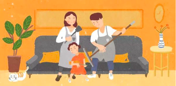 三是父母以身作则。父母在做家务的时候,孩子都会看在眼里,往往会希望跟爸爸妈妈一起来做家务。此时,父母自己对待家务的态度要端正,不能让孩子从父母的言行举止中认为做家务是件麻烦讨厌的事情。父母要统一认识,从自己做起。在疫情期间,夫妻俩对家务可以进行妥善分工安排,比如妈妈烧饭做菜,爸爸负责洗碗,不能让孩子产生“做家务是妈妈的事情”这样的错误观念,而是全家人一起动手做家务。如果孩子越帮越忙,父母要耐心教孩子改正并做出正确示范。在做家务的过程中,父母可以陪孩子一边做家务、一边聊天,交换彼此做家务的体会,以增加做家务的乐趣,营造良好的家庭氛围,建立融洽的亲子关系,避免孩子因宅家时间长产生不安和焦虑。