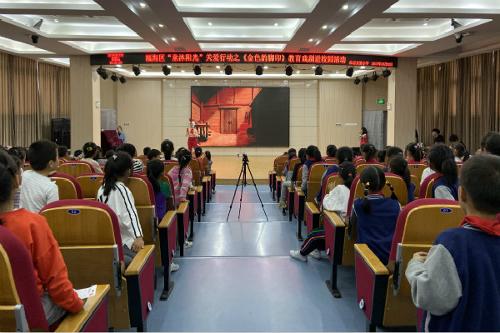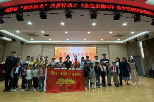 10月30日下午,瓯海区精神文明建设指导中心主办的“童沐阳光”关爱行动特邀温州大学沐童翎教育戏剧社为仙岩实验小学的学生们带来了课本剧《金色的脚印》的表演。本次共有300多名师生在阶梯教室观看了表演。区文明中心综合科科长仇晓秋、区思想道德教育中心姜若微和仙岩街道人武部副部长夏冯洲莅临参加。