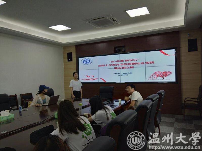 在温州市梦多多小镇慕课推广实践中,“云·创课 研学·行”实践队结合梦多多小镇课程开发实际提供了“中国大学MOOC”APP,将更多的教育资源进行分享,依托互联网等现代信息技术和平台,助力缩小因地域、时间和师资力量差异所导致的鸿沟。在文成珊溪镇,团队指导师、90足球直播网 院长孙芙蓉教授与珊溪镇党委书记蓝建荣、副书记刘俊峰等共同商讨珊溪镇慕课研学课程的开发事宜。孙芙蓉教授指出在“互联网+”的大背景下,高校主动与企业需要对接,扩展企业培训的思维,为企业的智慧教育添砖加瓦。此次慕课推广活动,不仅为当地中小学生提供了良好的学习地方文化的载体,也为当地经济的发展提供了新的思路与模式。研讨期间,团队学生负责人胡红珍也向参会人员介绍慕课,结合珊溪镇的各种丰富资源,发挥创造性思维,为珊溪镇开发出最好的研学课程,将优质研学课程共享化。