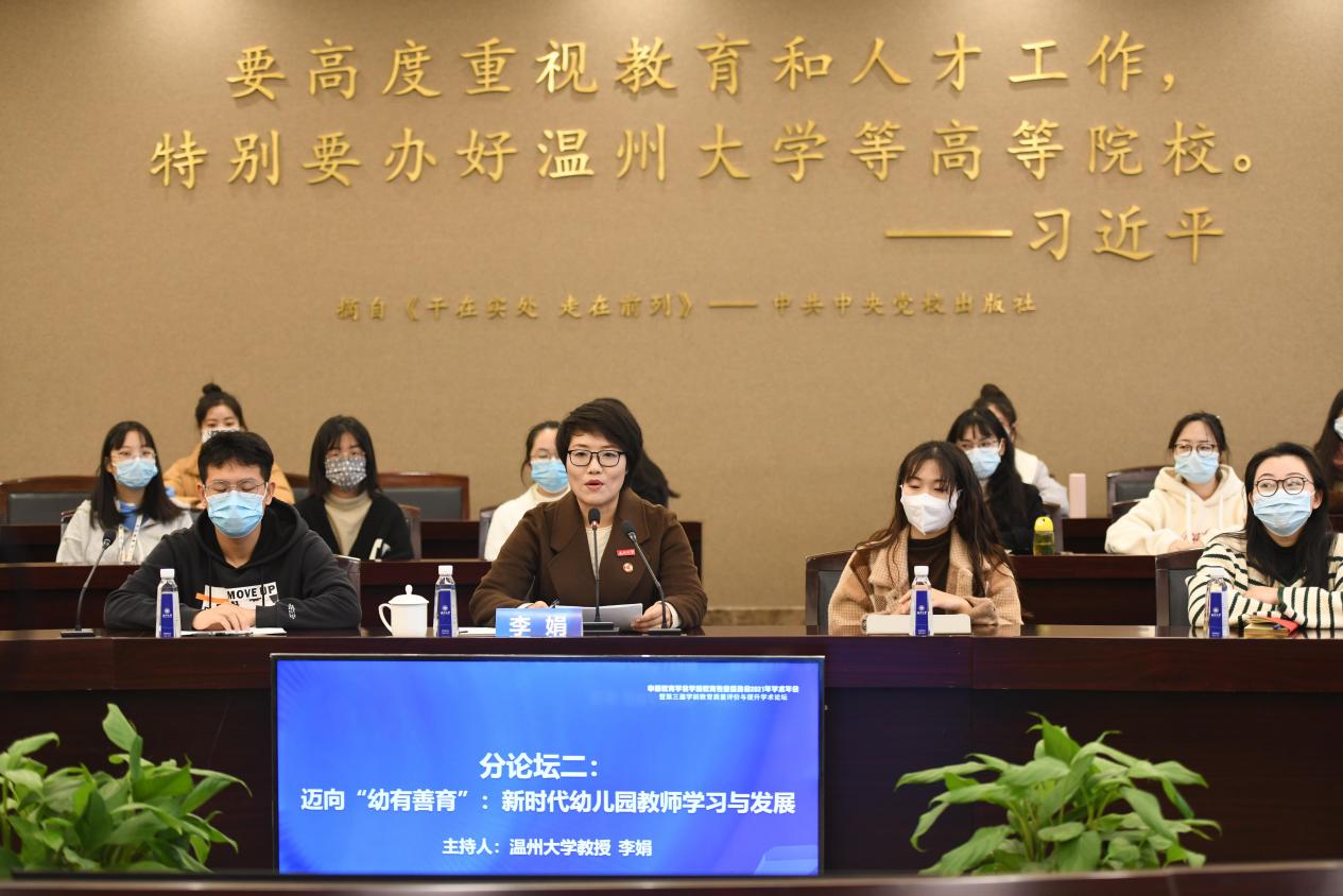 分论坛二会场主要聚焦“新时代幼儿教师的学习与发展”展开线上线下结合、多方面、全方位的研讨与交流,分论坛由温州大学学前教育系主任李娟教授主持。