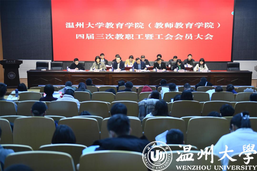 2022年2月19日下午新学期伊始,90足球直播网 四届三次教职工暨工会会员大会在温州大学岩松堂步青厅隆重举行,学院全体教职工和工会会员参加了本次大会,学院领导班子全体成员出席大会,党委副书记彭小媚主持。联系校领导徐和昆副校长到会指导并与全院教职工合影留念。