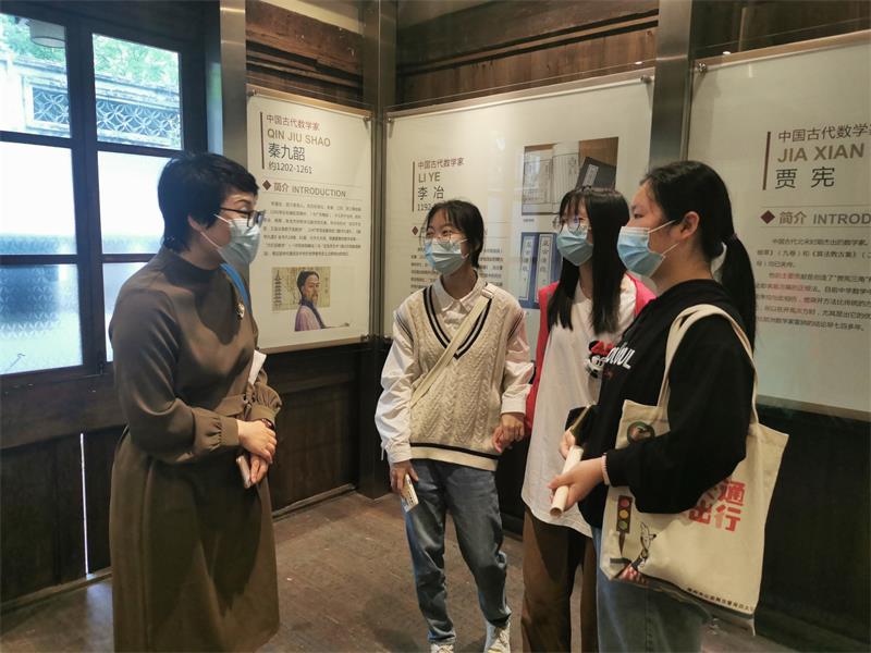 为了响应国家这一号召,我们思考并挖掘《学前儿童数学教育》这门课程的思政元素。我们制定了这门课程的思政育人目标之一——传承科学精神:课程中融入数学家的故事,让学生了解数学家的故事和精神,培养学生求真、严谨、质疑、进取、奉献的科学精神。为了达成这一思政目标,2022年4月27日,温州大学学前教育系李娟教授和曹娟老师带领温州大学20学前教育本科班的同学前往温州数学家名人馆瞻仰。