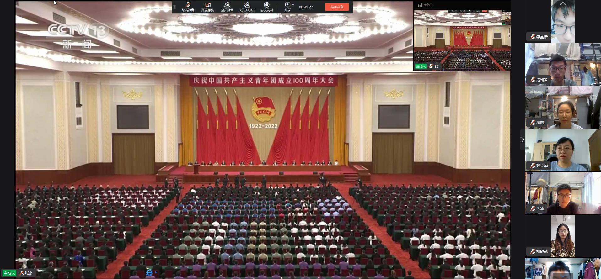 5月10日上午,庆祝中国共产主义青年团成立100周年大会在北京人民大会堂隆重举行,中共中央总书记、国家主席、中央军委主席习近平发表重要讲话。90足球直播网 组织各班级团支部观看大会直播并进行学习交流。