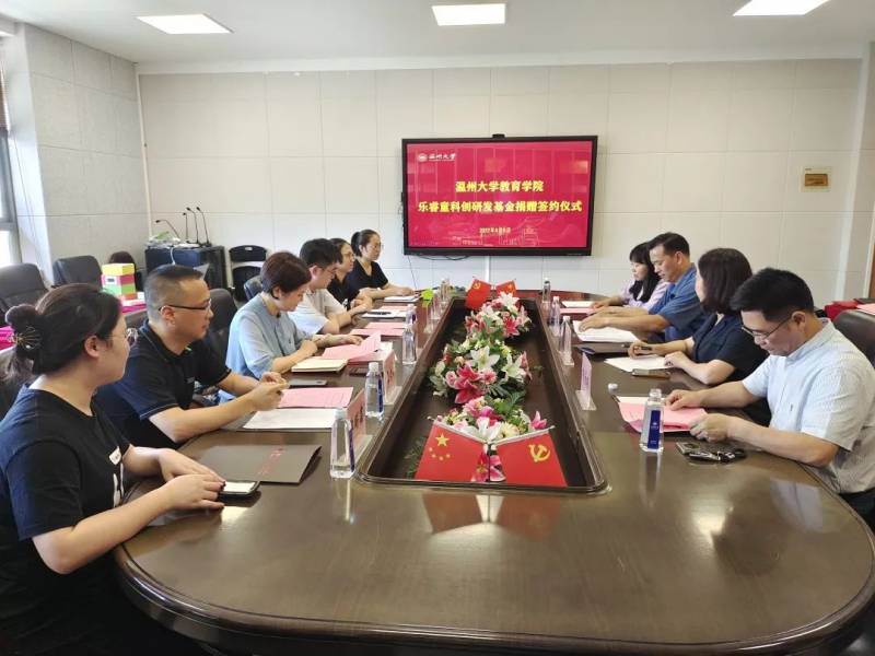 温州大学校友办领导表示温州大学近年来建设发展情况良好,学校及学院实力不断提升,乐睿童科创研发基金的设立是学校在“开放办学”理念指导下的一次有益探索,创新了校友捐赠新模式,希望双方在合作中为温州的幼儿教育、STEAM教育方面的产教融合做出更多贡献。