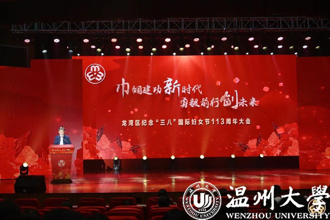 阳春三月,万象更新。3月7日下午,龙湾区举办纪念“三八”国际妇女节113周年大会,此次活动的主题是“巾帼建功新时代,勇毅前行创未来”,活动共分为《巾帼“她”风采》、《科创“她”力量》、《未来“她”担当》三个篇章。区委常委、副区长张少博,区委常委、组织部长蔡军令,区委常委、宣传部长陈永霖,区人大党组副书记、副主任陈林彬,区政协副主席林海珊,区妇联党组书记、主席王余余等出席活动,向广大妇女群众送去温暖的节日祝福。