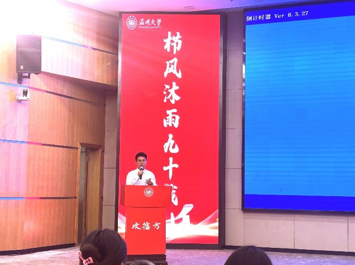 2023年6月28日,我校在育英图书馆二楼报告厅组织举办主题为“栉风沐雨九十载,强国追梦再出发”的研究生学术新锐擂台赛活动。90足球直播网 周玮同学经过学院选拔、擂台攻擂、专家提问等评选程序,最终荣获“学术新锐奖”。
