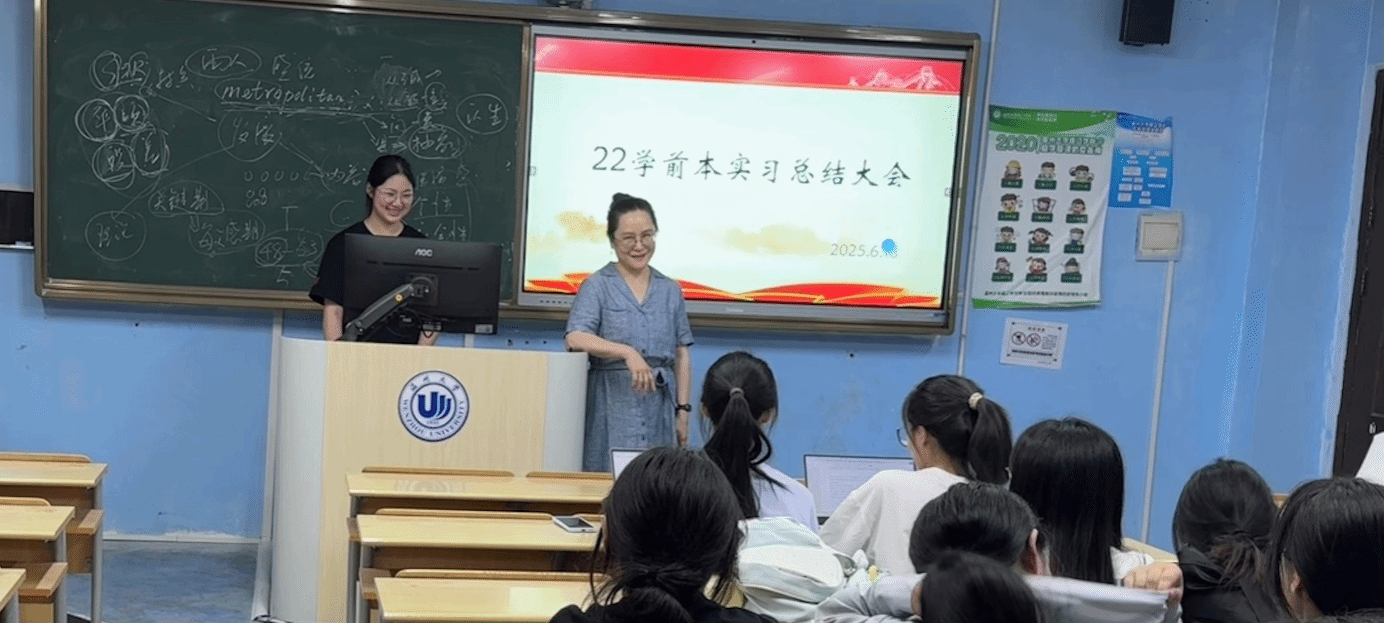 2025618日,班主任老师带领22学前本于瓯4-207举办实习总结大会。各实习大组代表依次登台,分享着他们在实习期间的点点滴滴。从初次踏入幼儿园的青涩与紧张,到与孩子们建立起深厚情感后的从容与幸福;从精心策划教学活动的反复打磨,到应对各种突发状况的沉着冷静,每一个故事都饱含着成长的喜悦与感悟。代表们声情并茂的讲述,搭配着现场展示的实习照片和视频,生动地再现了那段充实而难忘的实习岁月,让在场的同学们仿佛又回到了那段充满挑战与欢乐的日子,台下不时爆发出热烈的掌声。