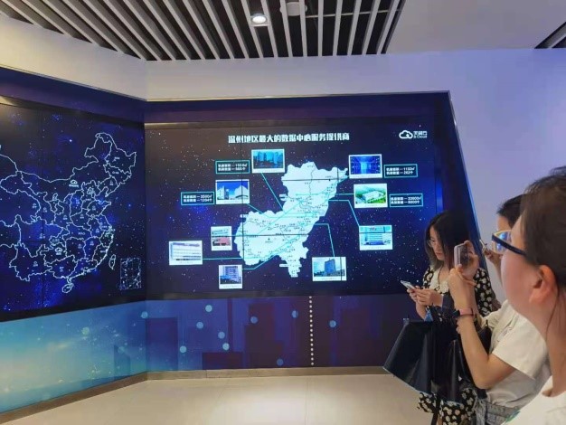今天的内容主要是温州电信智慧展厅的参观。上午8:45所有人准时在大厅集合,在工作人员的带领下进入了温州电信的智慧展厅。工作人员带我们参观了智慧展厅,并全程讲解。主要内容包括温州市智慧养老大数据平台、温州美丽水乡云管家、区域教育大数据平台、温州市医学影像云平台、智慧交管应用等。所有同学都表现出了浓厚的兴趣,并与工作人员交流了自己的思考与疑问。