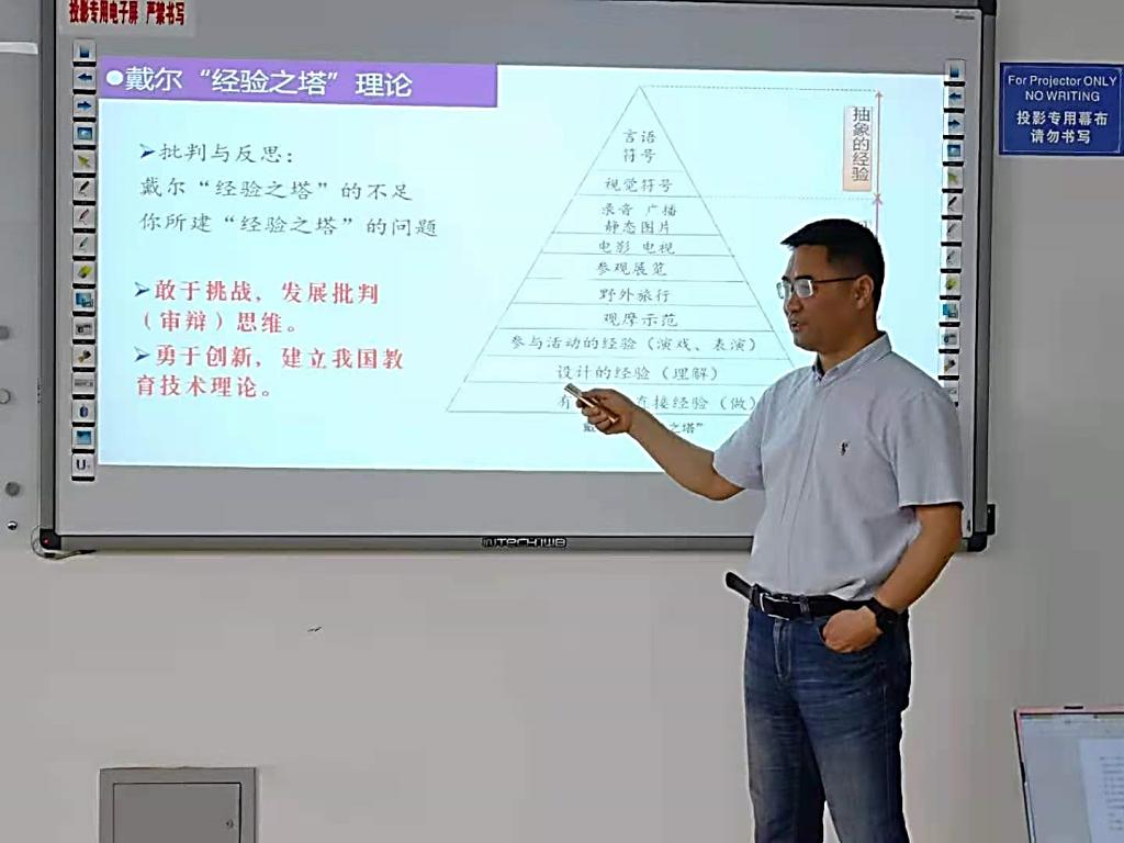 为促进教师专业化成长,共同提高教学水平,展现优秀教师风采,我系积极开展公开示范课建设。2021年5月10日下午,胡来林教授于北3-312教室开展了《媒体理论与教学创新》公开示范课。系副主任邱创楷博士、张新立副教授、赖文华副教授、青年教师柳晨晨博士、刘根萍老师等听取了本次示范课。