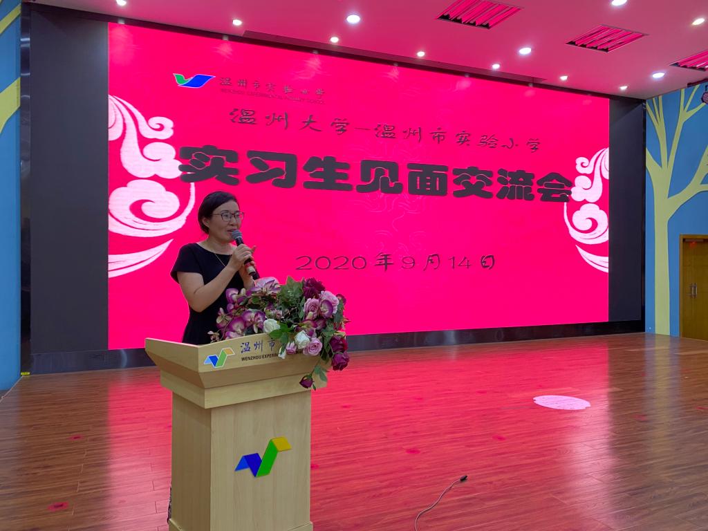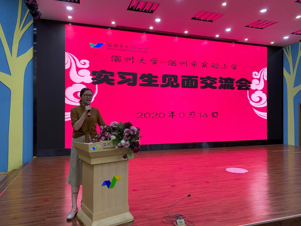 温州市实验小学首先向实习学生们表示了热烈的欢迎,在实习生见面交流会上实小教师代表发言致辞,在表示欢迎的同时又为实习生们送出真挚的祝福,预祝实习生实习顺利。温州大学的指导教师郑晓丽老师和李丽老师也向实验小学表示感谢,同时也向学生们提出了谆谆教诲。实习生的身份是既模糊又明确的,既是学生的老师,又是指导老师的学生,把握好自己的角色,帮助自己成长为一名合格的人民教师。老师们热切而真诚的期盼给了实习生们动力和信心,大家在分配好各自的实习教师之后就为第二天的任务和活动做准备了。
