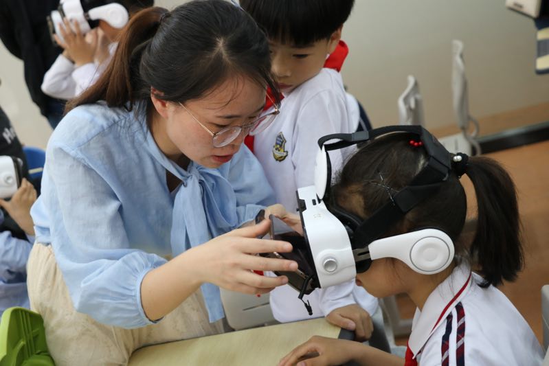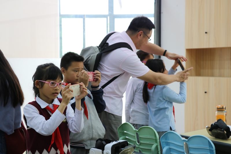 活动中前,整个团队利用中午时间积极准备相关虚拟教学资源和虚拟设备的调试。之后,在活动中在附属学校陈飞凡老师有序的课堂管理以及整个团队的协助下,学生们非常积极地参与此次体验活动。学生在活动中与整个团队成员积极互动、交流,每一个团队成员也非常热心的帮助学生反映这次活动开展的十分好,有学生认为,虚拟技术为他们学习带来了不一样的学习模拟旅行,同时也为他们语文写作学习带来很大的乐趣,希望多多开展类似的活动,将虚拟技术真正融合到课堂学习之中。