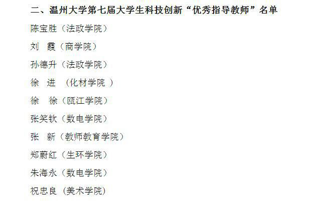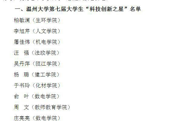 2018年4月9日,温州大学第七届大学生“科技创新之星”、“优秀指导老师”名单出炉,教师90直播 张新老师、周文同学获得了此项殊荣。