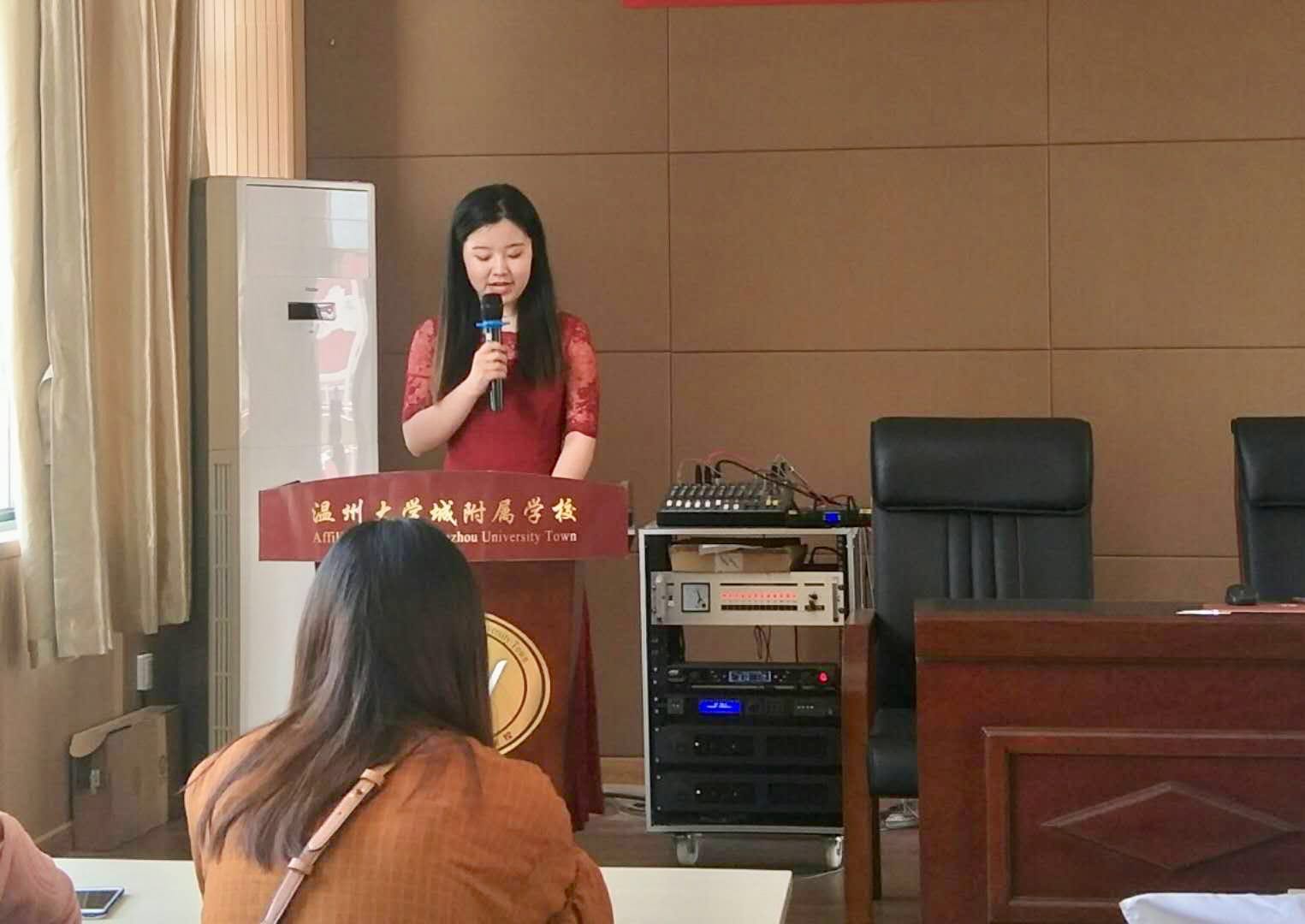 随后,附小教师代表戴志远老师上台发言,指出“理论不能解决的,实践将为我们解决”,实习机会是非常宝贵的,实习生应该主动协助导师、多与学生相处交流。之后,附小德育处连旭萍主任围绕“多看、多问、多做”,从细节方面阐释了“如何做一个让导师放心的实习教师”。我系张育萍博士则提出了“时时发问、时时学习”的期望。