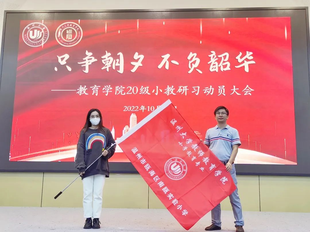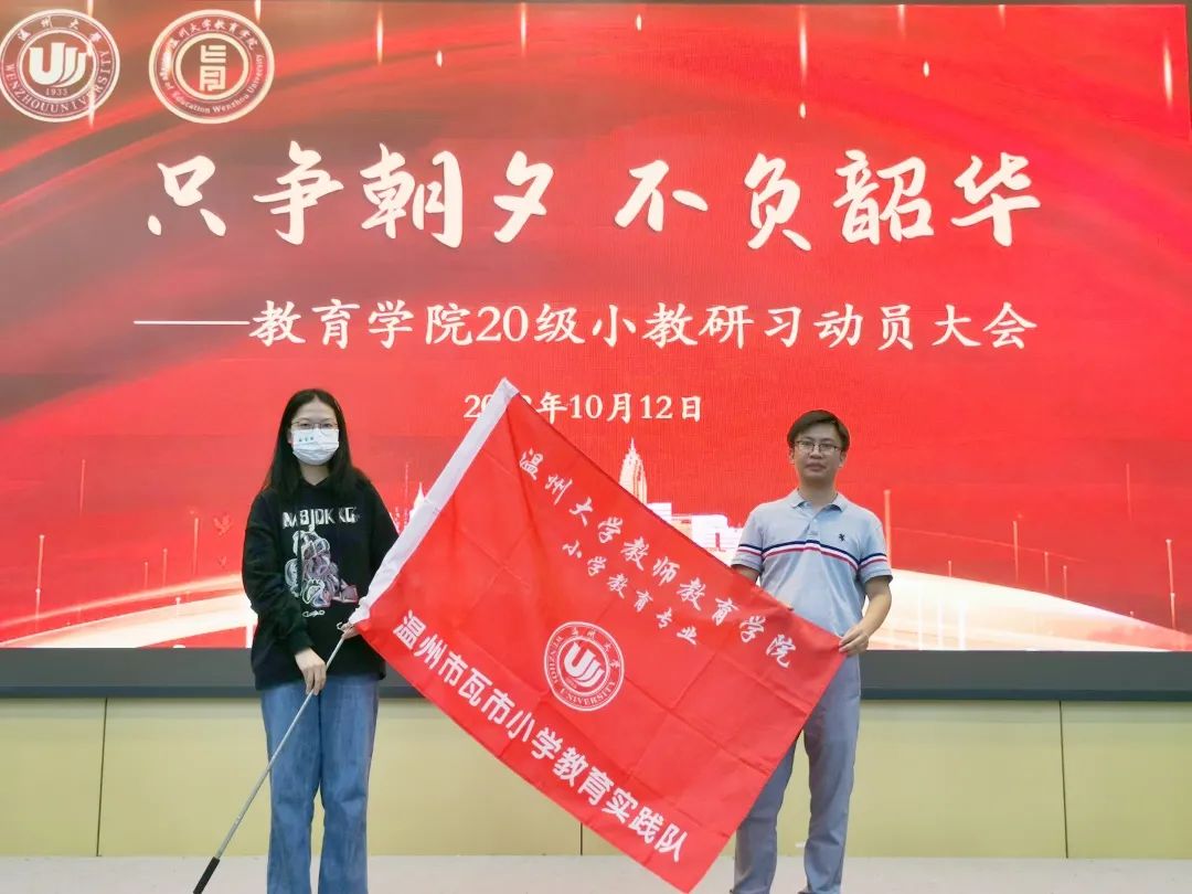 接着举行了隆重的授旗仪式,梅培军老师为各个实习点的队长授旗并合影留念。一面面鲜艳的旗帜,寄予着研习生和老师们对研习的憧憬与期盼。