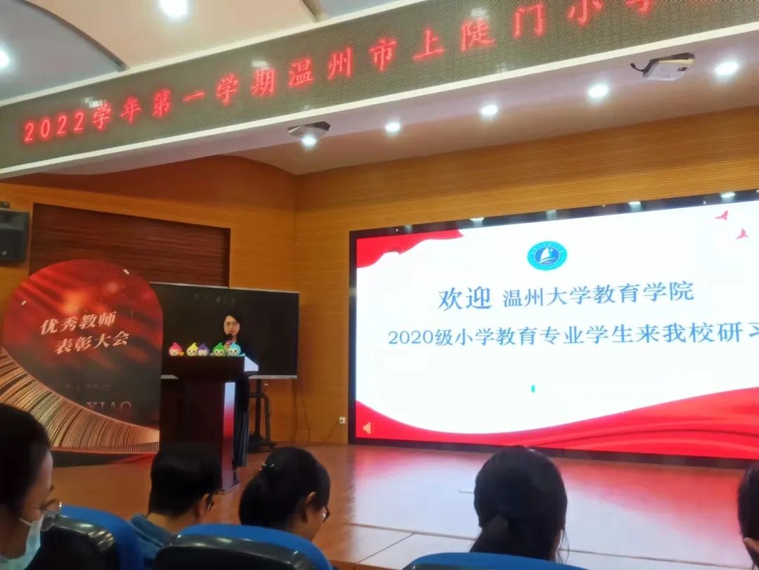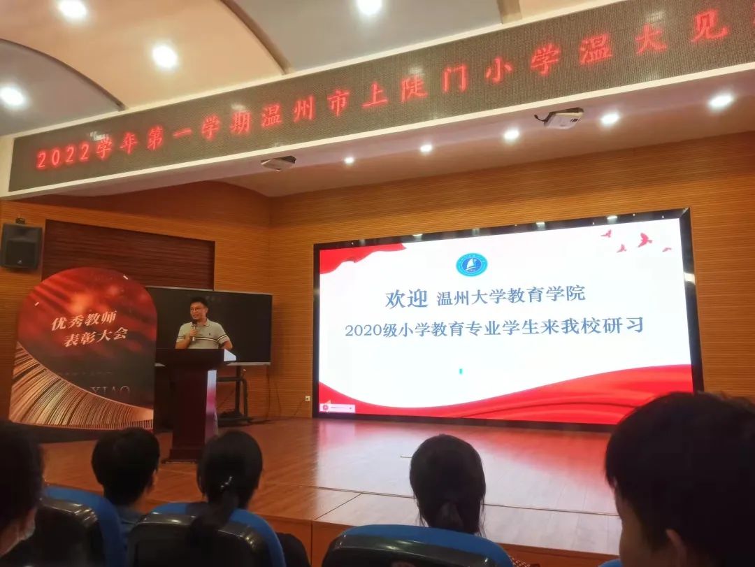 温州大学梅培军老师作为带队老师对小学教师准备迎接表示感谢,希望各位小教学子在研习中利用理论实践结合,多总结经验与并进行反思;向教学实践与科研结合努力,进行教育观察,包括课堂观察、校园文化、教学氛围、学习特色等;遵守制度,以教师的言行举止来规范自己。最后希望各位研习生能够体会教育的职业幸福感,为以后的职业生涯做好准备。