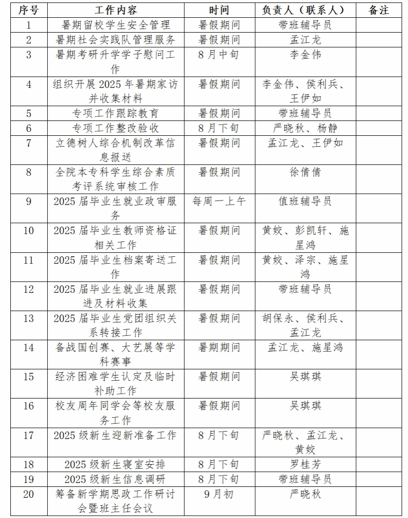 为更好服务师生,现将90直播 学工办2025年暑期工作安排通告如下: