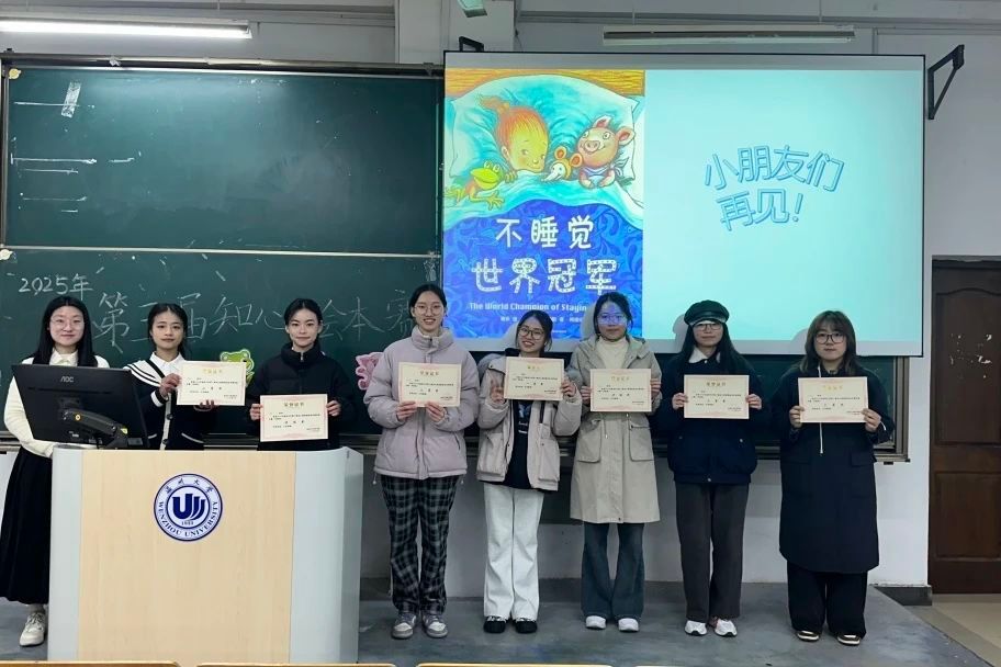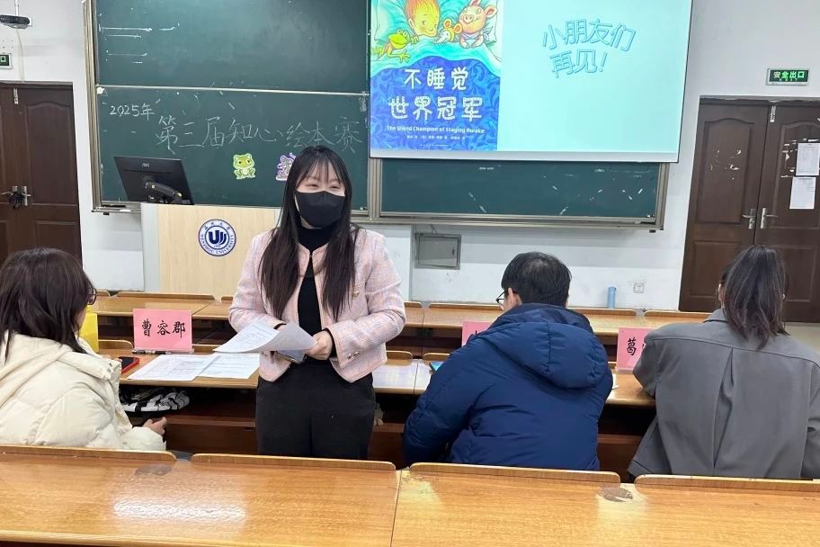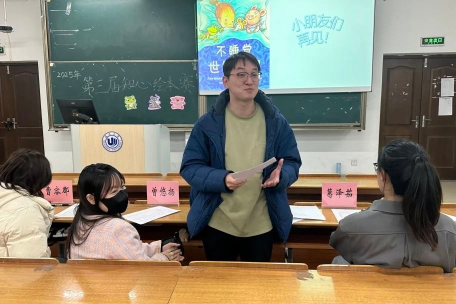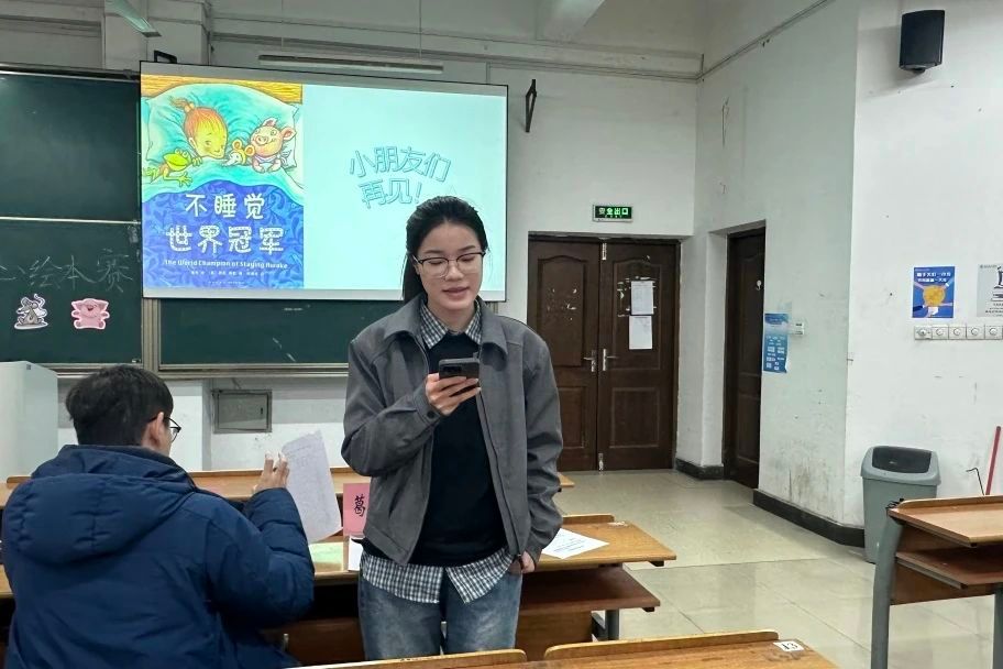 决赛特别邀请了曾悠扬老师、李金伟老师、曹容郡同学和葛泽茹同学出席评委,十八位选手有序分组进行了课前绘本讲课ppt的制作与五分钟的限时课堂讲演,在这有限的五分钟时间内,选手们竞相绽放出了独属于他们的师范风采与教学艺术。创意无限、引人入胜且充满欢声笑语的课堂安排,无一不彰显出独属于师范生的魅力与温馨氛围。在这两次的比赛中,我们见证了选手们高超的的课堂技巧。