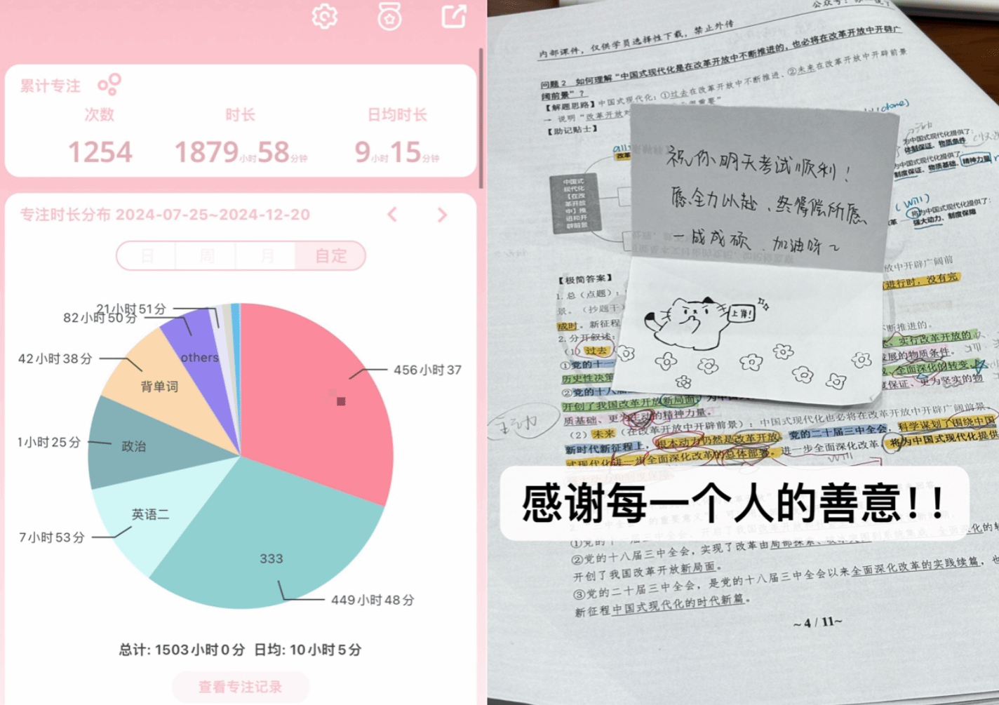 考研是一场漫长的修行,从2024年4月到2025年4月,从初始的迷茫和无助到如今站在自己当初所期待的未来里憧憬更远的未来,而那去年春天便开始编织的梦也在今年春天圆满盛开!各位考研人,请永远的相信自己不要害怕,大步向前走一切定会有回甘,保持良好的心态,积极的面对一切,也祝愿学弟学妹们可以再来年迎来属于自己的阳光明媚的春天!