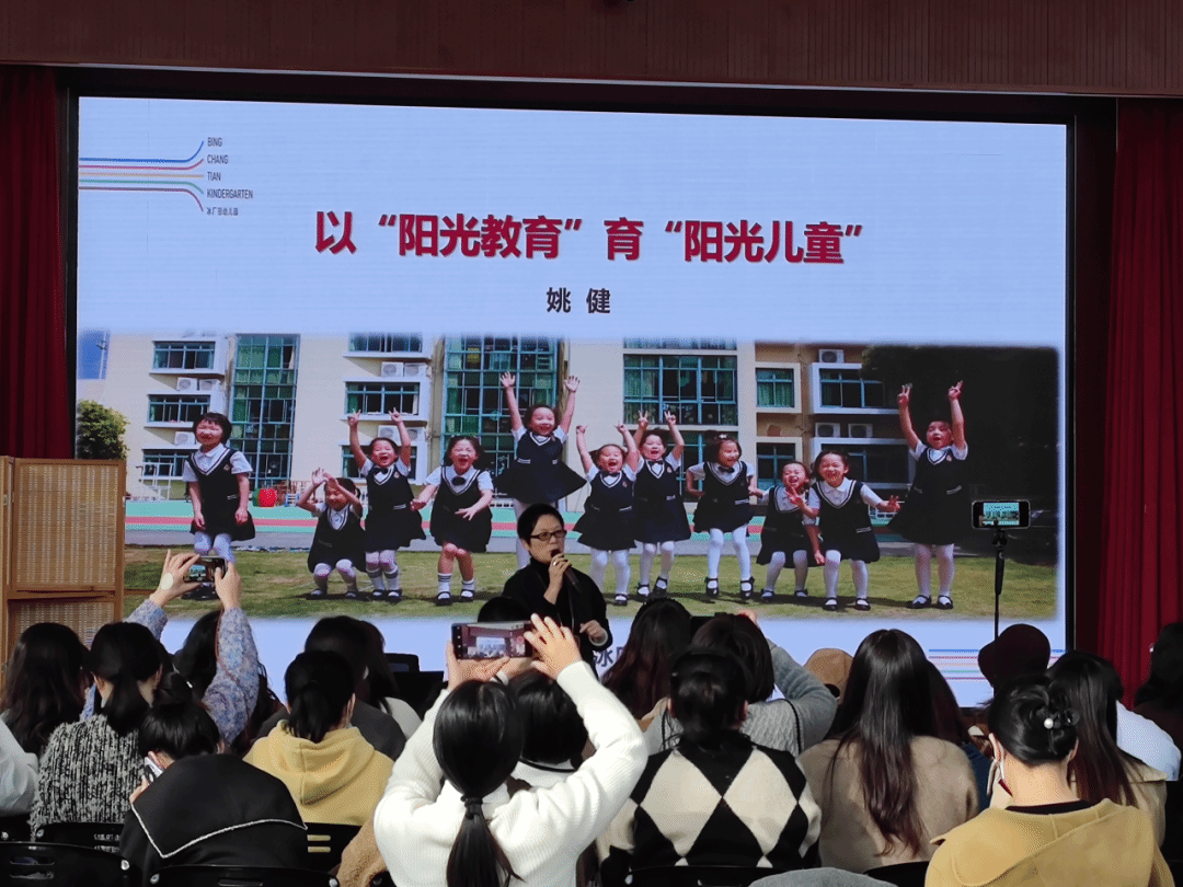 接着,姚健介绍了冰厂田幼儿园“阳光课程”的三个阶段,从起初的“课程回归生活、师幼共沐阳光”到“孩子在心课程随行”再到如今的“基于儿童视角的班本化课程实践”,在课程变迁的进程中牢牢抓住“理念一定要回归于生活”、“幼儿发展规律在心”、“丰富和拓展儿童的经验”等一系列行之有效的课程建设中的教育思考与主张,打开了我们探寻园本化课程建设的新思路。