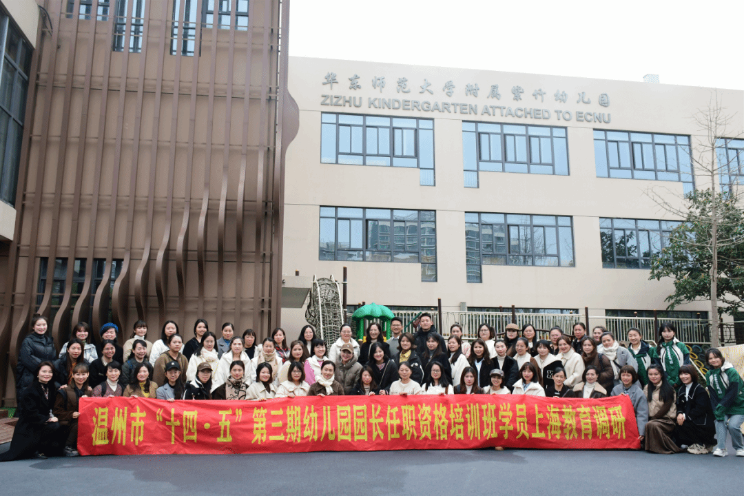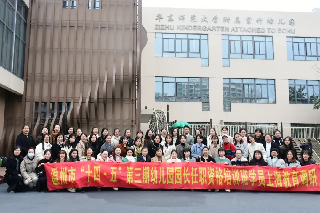 为发挥高质量幼儿园的引领作用,提供幼儿园学习借鉴的机会。2023年12月10日至14日,温州市“十四五”第三期幼儿园园长任职资格培训班成员在项目负责人90足球直播网 李晓燕教授、项目秘书90足球直播网 曹娟老师、项目班主任王盾和郑潇丽的带领下赴上海四所幼儿园:宝山区青苹果幼儿园、静安区安庆幼儿园、华东师大附属紫竹幼儿园、浦东新区冰厂田幼儿园云山部园区调研学习。