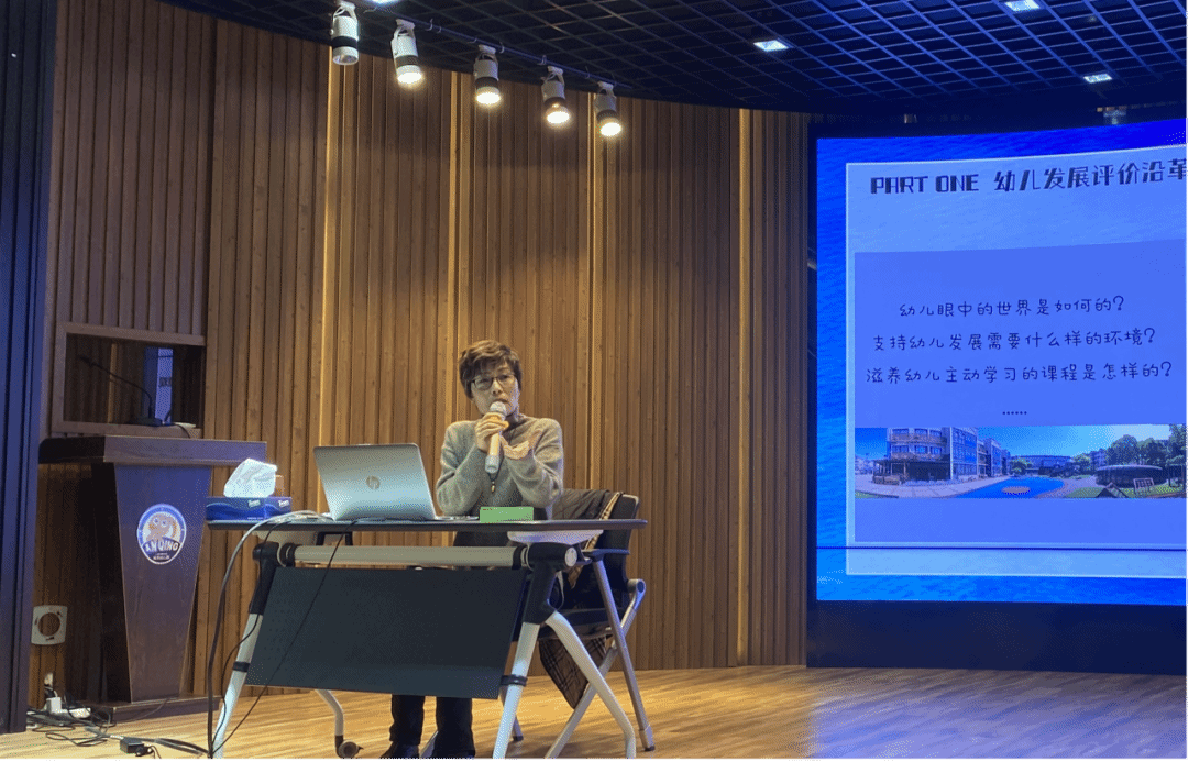 接着,温剑青园长为我们开展关于课程评价的专题讲座。一个小时的时间,温园长娓娓道来,让我们对课程评价有了一个比较全面的概念,从而促使我们反思,课程评价评什么,怎么评,使我们受益匪浅。