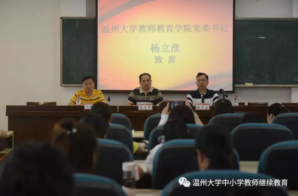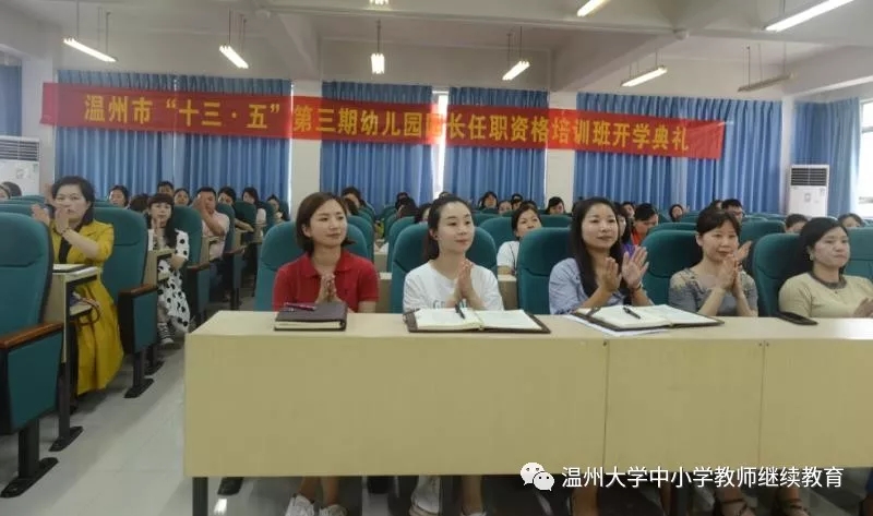 开学典礼 5月22日上午,开学典礼在温州大学南校区举行,典礼由教师90直播 副院长叶新东主持,来自温州各县、市、区的69位学员参加了此次典礼。会上,温州大学教师90直播 党委书记杨立淮致欢迎辞,向我们介绍了高速发展的温州大学和教师90直播 。陈琼娜园长代表学员发言,表态接下来的学习态度,学习方法、学习目标。最后由温州市教师教育院徐芦生副院长讲话,向我们介绍了温州学前教育的发展状况并为我们指明了方向。我们真切地感受到走进温大,培训开始了!—— [洪殿中心幼儿园 方敏]