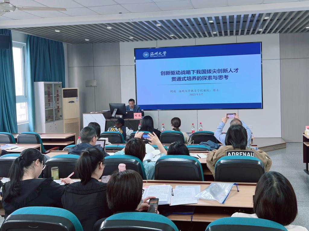 5月12日上午,90足球直播网 党委书记何毅教授带来《创新驱动战略下拔尖创新人才贯通式培养的探索与思考》专题讲座,他基于拔尖创新人才培养特征,依序对拔尖创新人才培养计划的政策、历史及操作方法进行比较说明,对其中存在的多重利益博弈关系进行分析,特别是从新高考背景下帮助中学教师适应变革,处理好拔尖创新人才培养大背景下高等教育与基础教育的有机衔接,建立贯通基础教育与高等教育的英才教育体系。