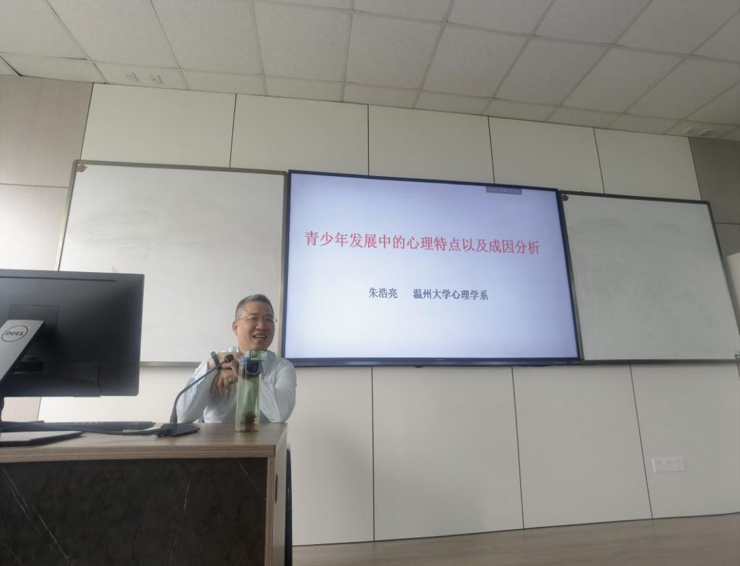 朱浩亮副教授从四个年龄段孩子的发展特点着手,讲解了不同时期孩子的心理特点以及应对措施,即:幼儿期要在游戏中学会乐己;童年期要在鼓励中学会阅己;少年期要在规则中力争悦己;青年期要在整合中实现越己。“乐己--阅己--悦己--越己”短短八个字串起了3岁—18岁青少年发展中的心理特点以及成因分析。此外,朱教授根据青少年厌学心理的基本理念从整体性、根源性、支持性、生态性、可塑性、早期性6个方面结合实际的案例经验为学员们总结出“评估--疏通--柔揉--拉锯--回归--自助”的青少年厌学心理干预“六部曲”,把遇到的复杂厌学问题简单化,再把简单的问题具体化。
