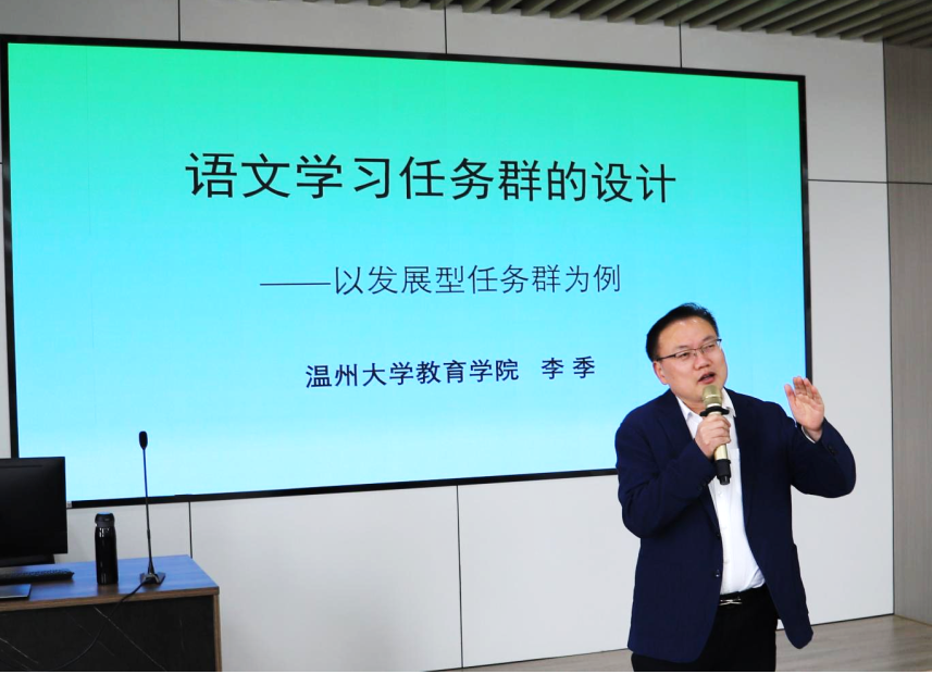 语文学习任务群是初中语文课程内容呈现形式和实施方式的新探索。4月7日至4月9日,以“基于新课标的初中语文学习任务群教学设计与实施”为主题的省培项目在90足球直播网 顺利开展。培训为期三天,分别由永嘉县教师发展中心副主任、浙江省特级教师肖培东老师,90足球直播网 副教授、硕士生导师付睿博士,温州大学特聘副教授、李季博士、90足球直播网 副教授、硕士生导师梅培军博士为学员授课,近四十名来自温州各县市的一线初中语文教师参加培训。
