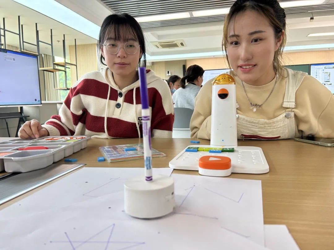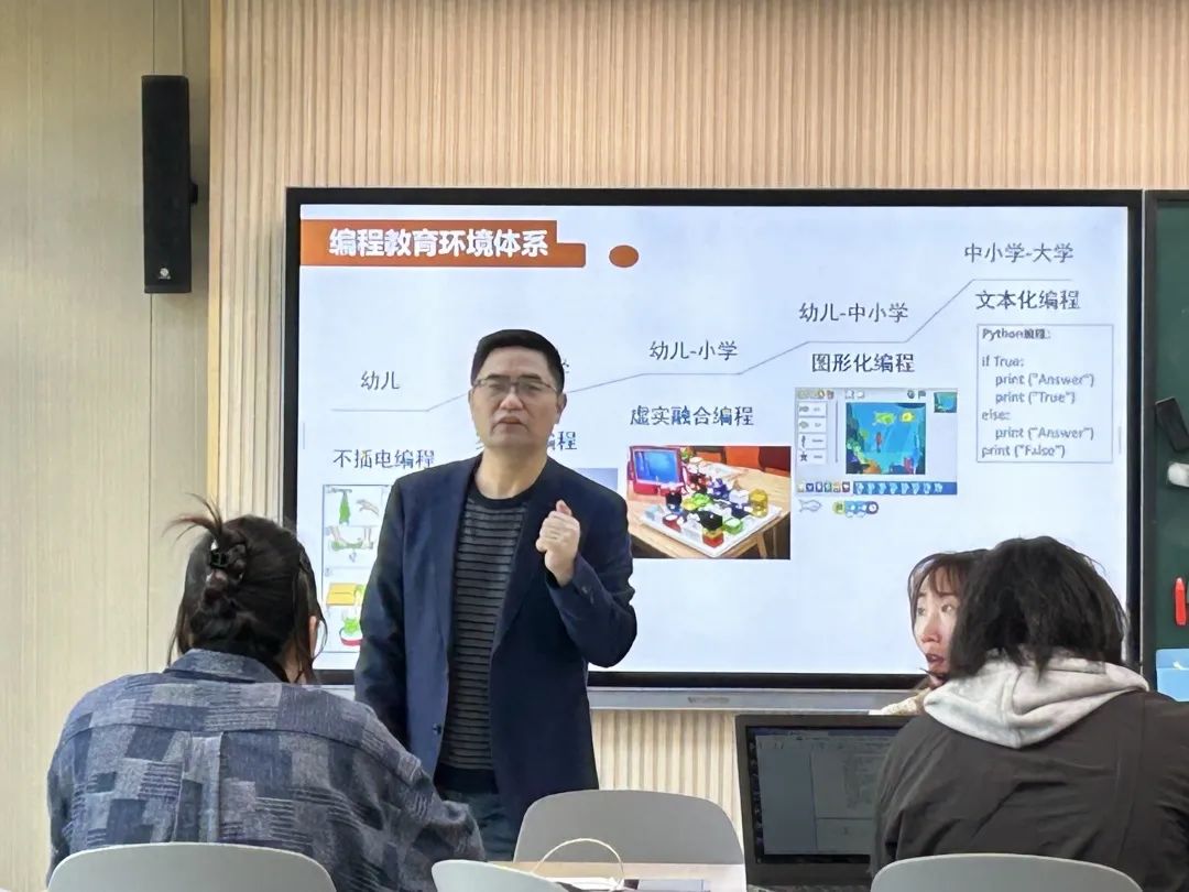 2023年4月7-9日在温州大学教师教育实验教学中心的智慧教室面向幼儿教师开展了为期三天的《儿童游戏化编程活动设计与开发》省培课程。这门课程是在温州市创建国家“智慧教育示范区”以及“温州市人工智能教育实验学校创建”的背景下设计开发,本课程内容包括六个模块:幼儿编程教育概述、幼儿实体编程技术、幼儿图形化编程技术、幼儿计算思维教育目标及内涵、儿童游戏化编程活动设计与开发和儿童游戏化编程活动展示与评价等,由温州大学STEM教育研究中心胡来林教授和张新立副教授主讲,来自温州、平阳、乐清、永嘉、瑞安、洞头等地的50多位幼儿园教师参加了本次培训。